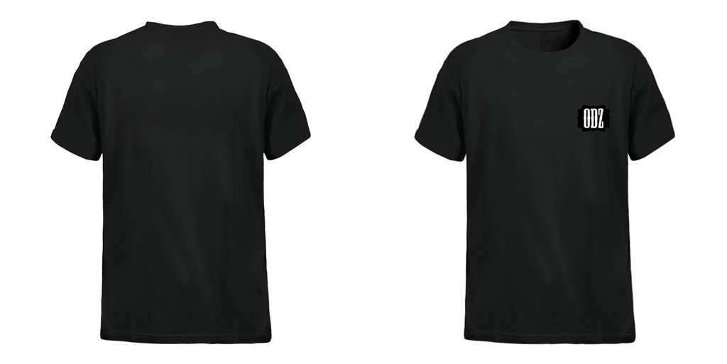 Svart Klassisk t-shirt i mjuk bomullstrikå med vitt tryck på ryggen. Rund halsringning och rak passform.